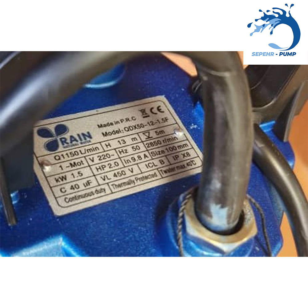 پمپ کف کش راین مدل QDX50-12-1.5F به صورت تکفاز و مورد استفاده در آب تمیز می باشد. این برند ساخت کشور چین و از جمله کفکش های با کیفیت و ارزان قیمت می باشد. قدرت الکتروموتور 2 اسب بخار، حداکثر آبدهی 1150 لیتر دردقیقه حداکثر ارتفاع 12 متر، حداکثر دمای کاری 40 درجه سانتی گراد می باشد.